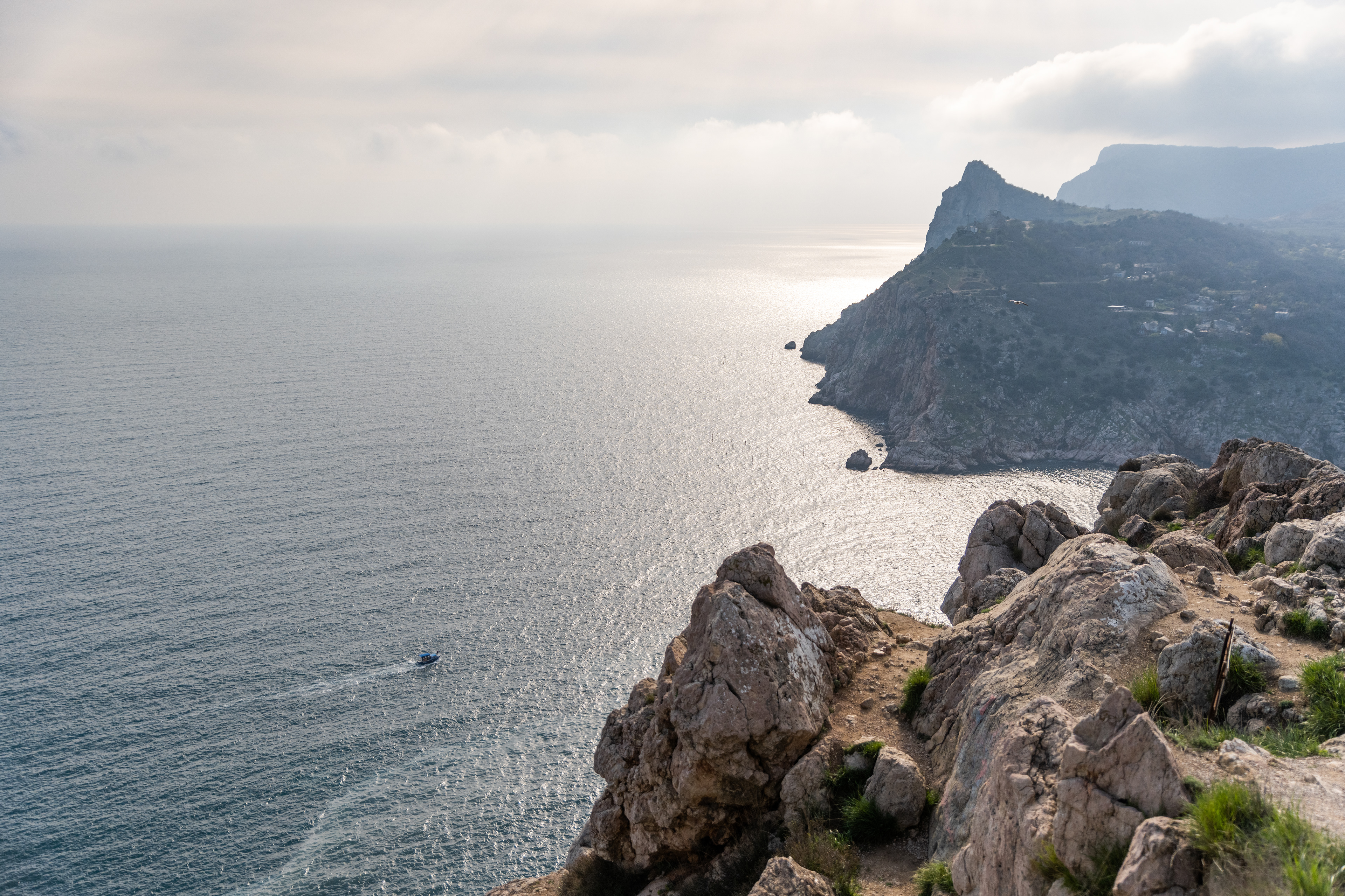 Пасмурная погода в Крыму не повод расстраиваться, главное смотреть не на море, а на горы.